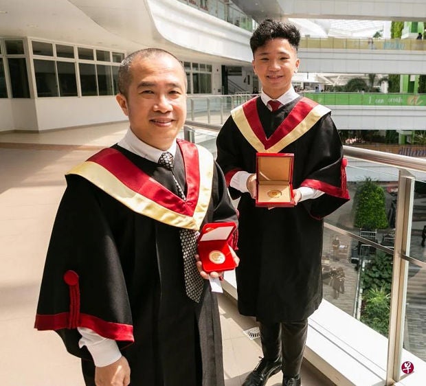 工教局星期三(7月27日)为毕业生举办毕业典礼,黄奕方凭优异的成绩,在典礼上获颁义安公司金牌奖。