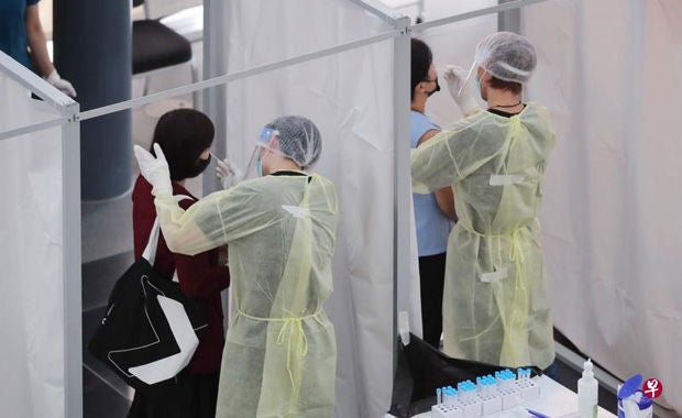 中央医院会特设快速筛查区,20分钟就能出结果。照片为今年的一场会展时设立的抗原检测区。(档案照)