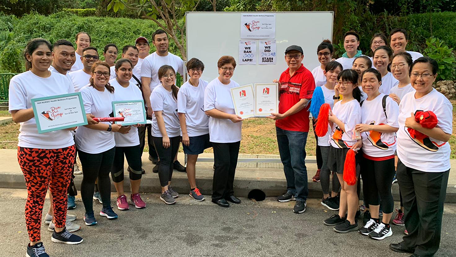 The Run & Jump for Hope 2019, organised by the SGH Nursing Division as part of SGH Nurses’ Health Improvement Programme, rose to the challenge and set the national record for the most number of star jumps performed by a group and the most number of laps in an 800m relay run. In total, they achieved 24,248 star jumps and 300 laps in 24 hours!