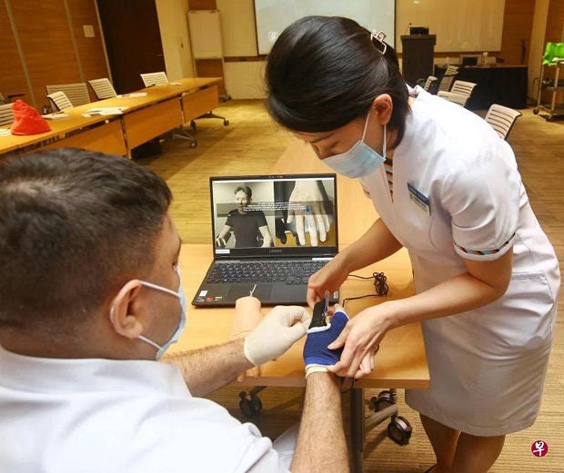为了更好地培训新进护士,新加坡中央医院与科技业者合作,研发出一套模拟真人的互动式游戏培训模块,让护士可通过与虚拟病患互动。和3D打印高度仿真的模拟手臂,操作静脉插管过程,借此提高培训效果。