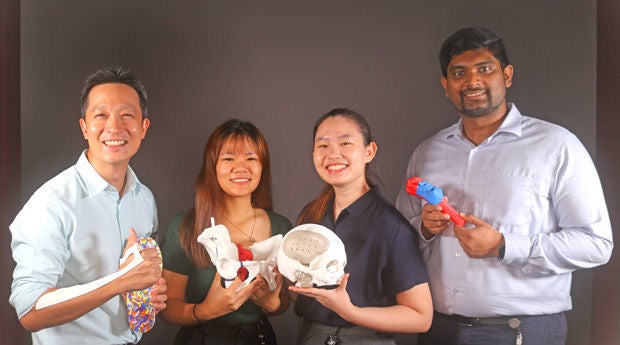 The Singapore General Hospital 3D Design and Printing Centre team (from left) : Clinical Lead Dr Mark Tan, Engineer Chee Shu Ping, Engineer Tan Shing Yi, Manager Nisar Ahamed