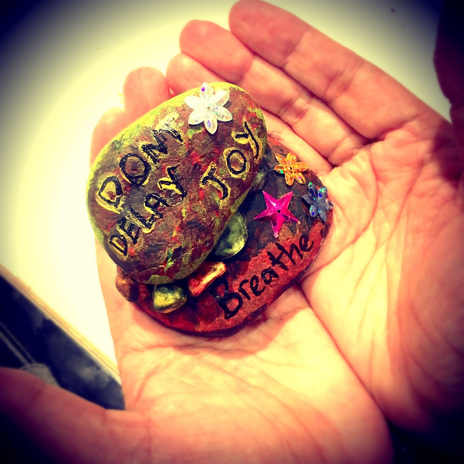 After the session on “Finding My Balance”, a participant thanked Emily for helping her find her balance through the art making process as she explored, chose, stacked and painted the pebbles provided.