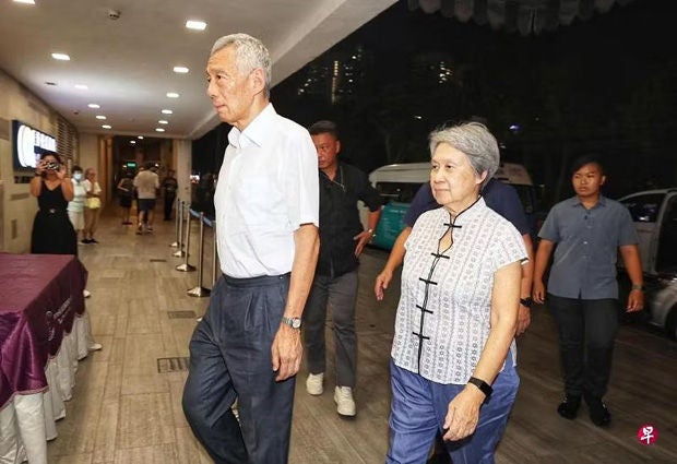 李显龙星期四(10月10日)晚上约8时30分,与夫人何晶及儿子李鸿毅抵达新加坡殡仪馆。他在灵堂逗留了约10分钟,并未接受媒体的访问。另一个儿子李毅鹏下午已先去吊唁。