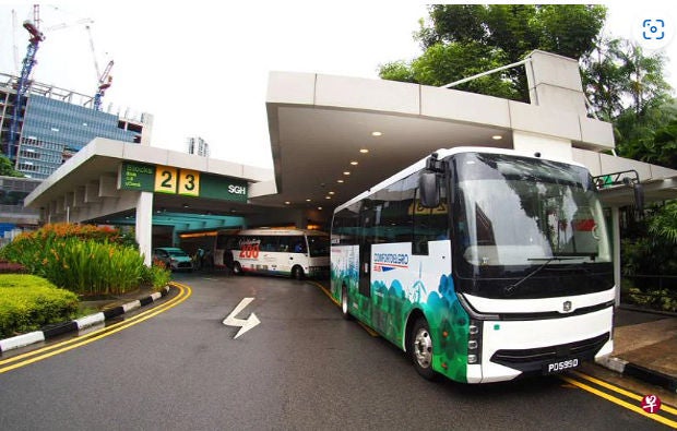 新加坡中央医院两天前开始试用这辆电动巴士,为期半年,免费载送病人和访客往返欧南园地铁站、欧南社区医院及新加坡国家心脏中心。电动巴士也会在竹脚妇幼医院和樟宜综合医院试用。(取自新加坡中央医院脸书)