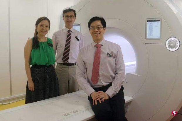 ​新加坡中央医院和国立脑神经医学院的研究小组发现,青少年原发性脊柱侧弯症的起因可能与大脑有关。图为研究成果第一作者苏智忠副教授(右起)、资深作者卢耀龙教授,以及通讯作者曾玲玲教授。(新加坡中央医院提供)