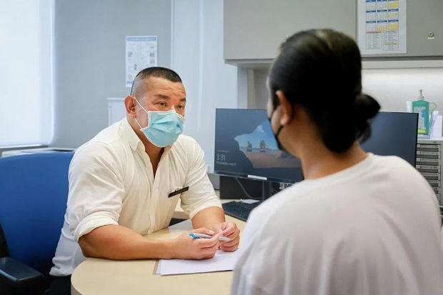 Daniel (right) and Dr Melvin Tay, a senior consultant at the department of respiratory and critical care medicine at SGH, on June 21, 2023. ST PHOTO: GAVIN FOO