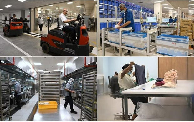 At the clean linen supply unit, 30 workers handle between 18,000 and 20,000 pieces of linen per day.