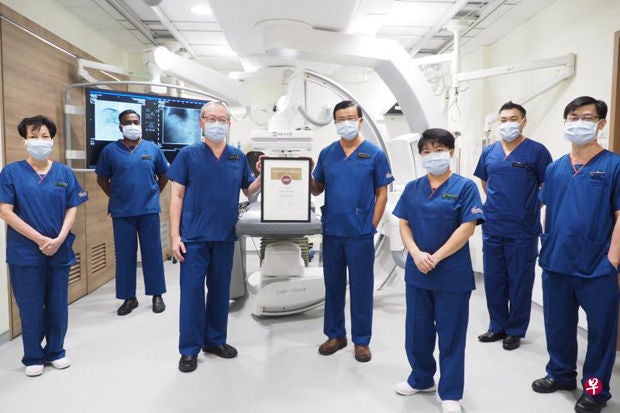 ​新加坡中央医院的血管与介入放射学部门获得欧洲介入放射学会的国际认证,在区域医疗上,发挥着举足轻重的影响力。左三为高级顾问医生郑健雄副教授。(新加坡中央医院提供)