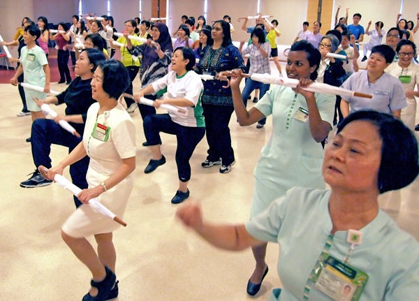 Throughout the year, there are regular exercise classes, sports events and competitions to promote a physically active lifestyle while fostering team spirit among staff. We partner the Health Promotion Board to implement various workplace health promotion programmes, such as shaping healthier dietary behaviour for nurses who perform shift work. With more than half our waking hours spent at work, the workplace is a unique touch-point to strengthen preventive health efforts and reduce the risk of chronic diseases.