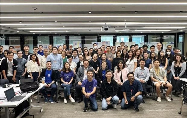 Dr Aaron Lee (right) and his team at the two-day GenAIus Challenge workshop hosted by Synapxe.