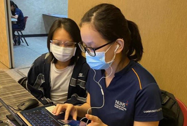 A Covid-19 virtual ward team from the National University Hospital system monitoring a patient's vital signs remotely. PHOTO: NUHS