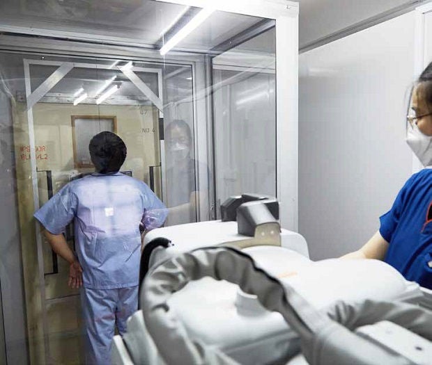 Similar to the idea of a photo booth, a shipping container is converted into an x-ray room with a clear polycarbonate plastic box inside. Patients enter the container and stand against one side of the clear box to have x-rays taken. Named SG SAFE.R, the booth cost about $7,000 to build. The booth, said Dr Lim, is an example of how his engineering experience adds value to his current work.