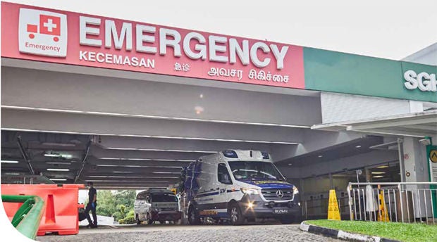 • Usually transported by Singapore Civil Defence Force (SCDF) ambulances, whose paramedics message the emergency department details ahead of arrival