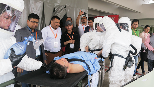 Associate Professor Hira Kumari Niraula, Nursing Administrator, Bir Hospital, Nepal, said, “It was very good to see the chemical disaster containment because in Nepal we don’t have chemical Hazmat kits. But now, at my hospital, we’re going to stock up on these.”